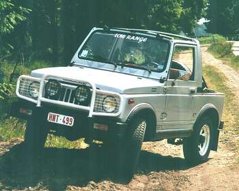 6 januari 2002 - Ramon stuurde me foto's van zijn suzuki Carabian. Zo heet de samurai in Thailand. Hij heeft het ding nieuw gekocht in 1993 en er al een hoop aan veranderd. o.a.: Old Men Emu veren. een 410 tussenbak, 30" banden etc.