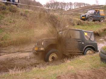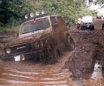 1 maart 2002 - Miquel stuurde me deze foto van zijn samurai in de modder.