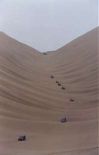 | 7 september - Alberto stuurde me deze foto vanuit Peru. En ja: de kleine stipjes in het zand zijn suzuki's! |