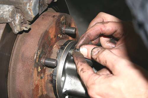 De M8 boutjes met de conische ringen en veerringen in de rotor draaien. Da's een beetje gepruts... |