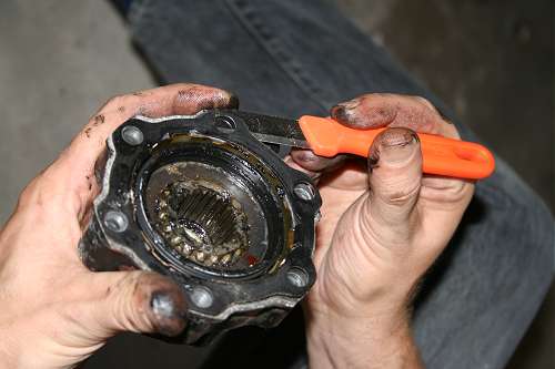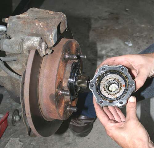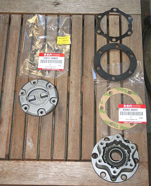 van de vrijloopnaaf en daarboven een pakking die tussen de deksel en het