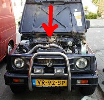 Ga onder je suzuki liggen en zoek naar de bout onderaan het motorblok om de olie af te tappen. Doe dat bij voorkeur in je zondagse kleren en zoek een parkeerhaven uit een beetje ver van je huis. Ergens aan de andere kant van Nederland ofzo. Een brug of een smeerput is handig maar meestal heb je die net niet in de buurt....... |