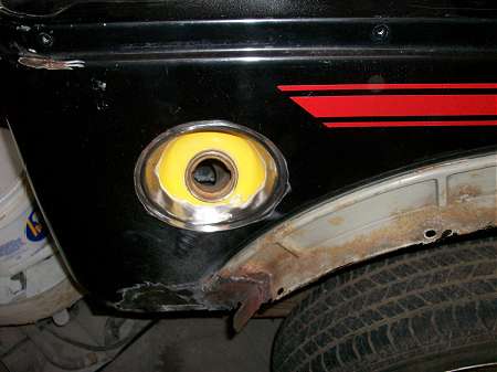 zwarte Spaanse body te restaureren en geel te spuiten. Van de gele gebruiken