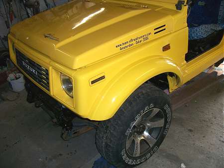 plaatwerk van de gele suzuki. De gele kleur op de foto's komt heel slecht