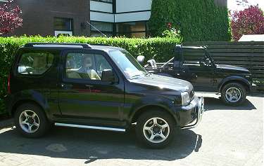 1 augustus 2002 - Niels stuurde me deze foto's. De samurai is van hem en de jimny van zijn moeder.