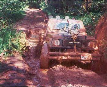 6 januari 2002 - Ramon stuurde me foto's van zijn suzuki Carabian. Zo heet de samurai in Thailand. Hij heeft het ding nieuw gekocht in 1993 en er al een hoop aan veranderd. o.a.: Old Men Emu veren. een 410 tussenbak, 30" banden etc.
