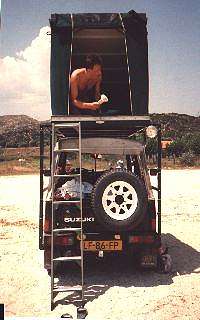 24 maart 2001 - Foto's gekregen van Marcel van zijn samurai met een daktent. Hij heeft ook een homepage. Je vind de page op de linkspagina.
